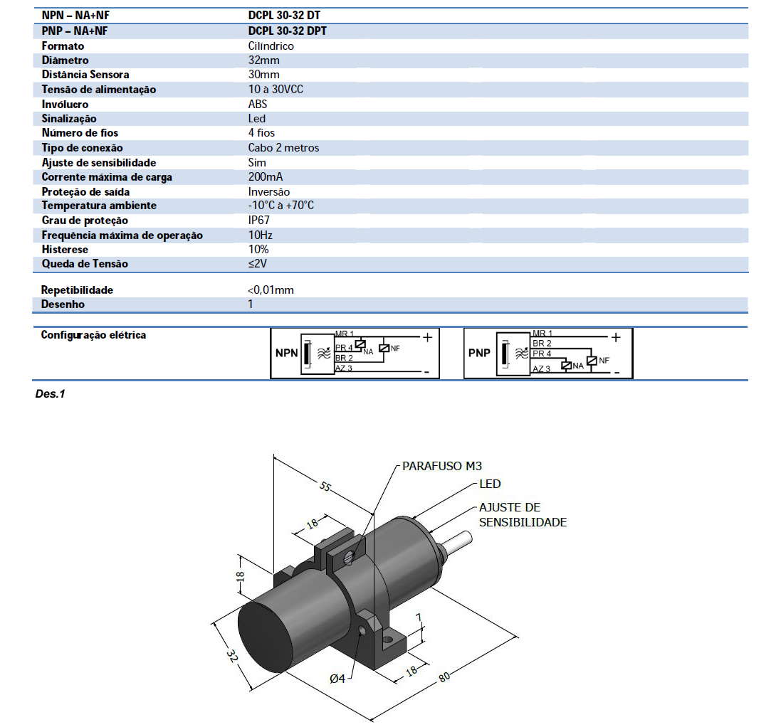 Corrente Contínua: NPN – PNP – 4 fios - Ø32 Liso