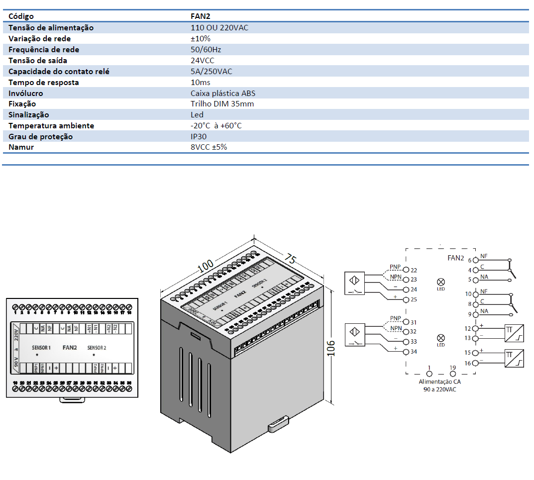 São fontes de alimentação para 2 sensores de proximidade NAMUR, indutivos, capacitivos e fotoelétricos que possuem configuração elétrica com corrente continua.