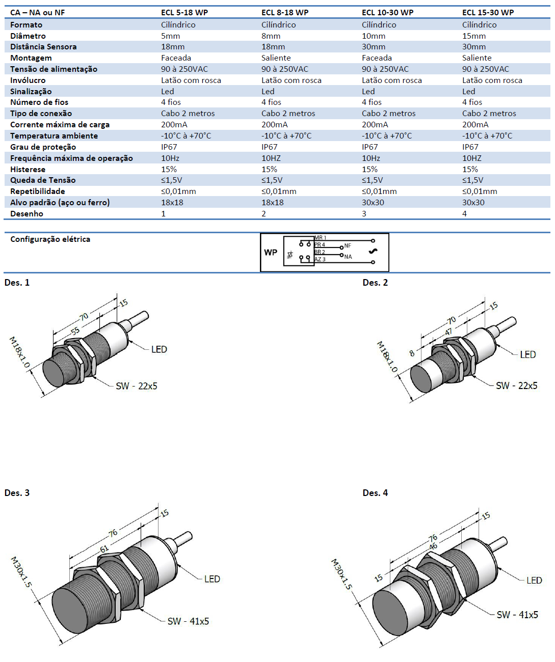 Corrente Alternada – Programável – 4 fios M18x1
