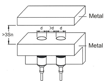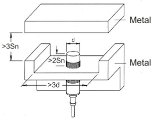 Nesse caso deve-se ter mais atenção para a montagem, devendo o sensor ficar livre de todos os lados da face ativa, pelo menos três vezes o diâmetro “d” que representa a superfície ativa do sensor.